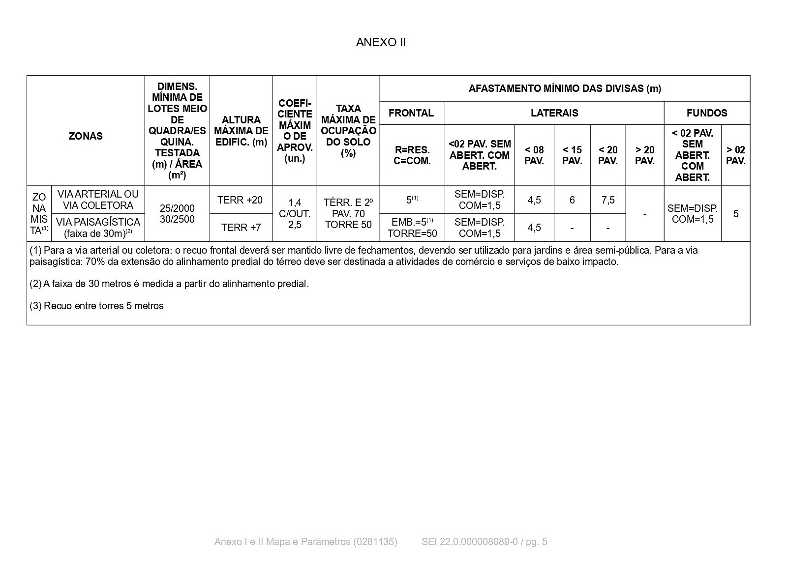 Os parâmetros construtivos da Zona Mista são aqueles definidos pelo Anexo II da presente Lei.
