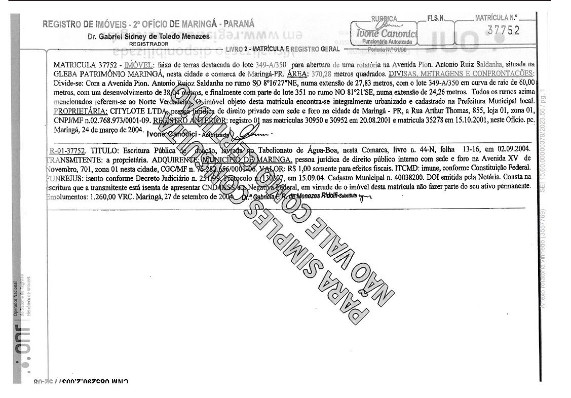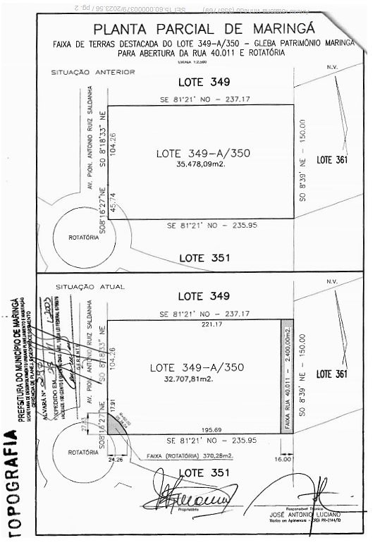 349-A/350, da Gleba Patrimônio Maringá, para fins de compor parte do Sistema Viário do